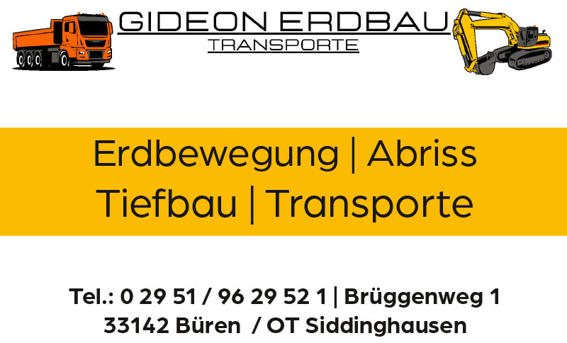 Für die Erdarbeiten konnte die Firma Gideon Erdbau und Transporte aus Büren gewonnen werden. Mit ihrer Erfahrung in den Bereichen Transport, Abriss, Tiefbau und Erdbewegungen war sie der verlässliche Partner, der die bauliche Grundlage für das Gelingen geschaffen hat.
